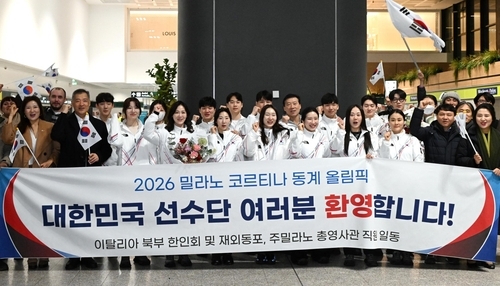 올림픽 한국 선수단, 밀라노 입성…'금 3개·톱10 달성하겠다'