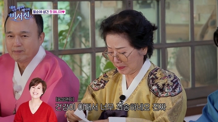 박미선은 이어 “항상 저를 너무 많이 사랑해 주시고 친딸처럼 많이 걱정해 주셔서 너무 감사해요. 저도 건강 관리 잘 할게요. 언제나 행복하셔야 해요”라고 덧붙여 선우용여를 울컥하게 만들었다.