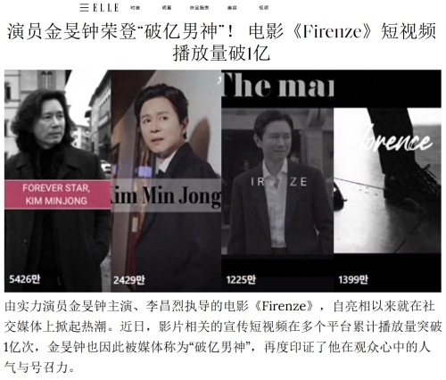 또한, 작품과 관련한 릴스 영상 조회수가 총 1억 뷰를 돌파했고 중국 엘르(ELLE)와 텐센트 등 중국 주요 매체는 김민종을 '1억 뷰의 신'으로 칭하며 작품과 함께 그를 집중 조명하기도 했다.