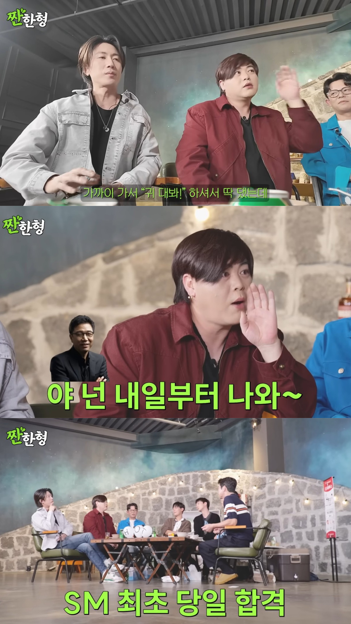 문희준은 “개인기를 펼치고 나니까 이수만 선생님이 ‘너 이리로 와 봐, 귀 대봐’라고 하시더니 ‘넌 내일부터 나와’라고 하셨다. SM 최초 당일 합격인 거다”라고 말했다.