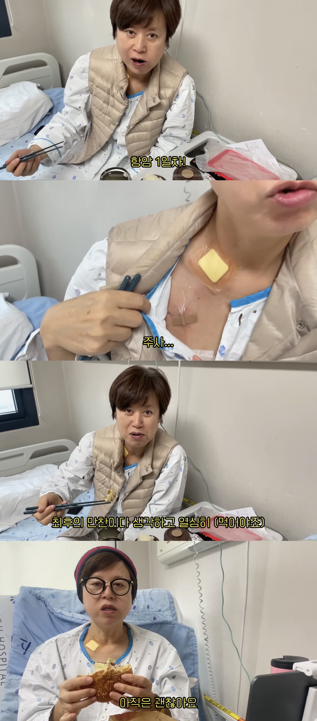 그는 “이제 시작이다. 최후의 만찬이다 생각하고 열심히”라고 덧붙이며 식사를 즐기는 모습을 보였다. 치료에 임하는 결연한 태도 속에서도 특유의 유쾌함은 잃지 않았다.